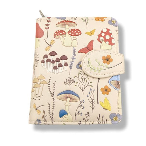 This charming Small Zipper Wallet features an enchanting Mushroom Forest design set against a subtle beige background, crafted from durable vegan l...
