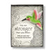 A hummingbird exquistely crafted, hovers gracefully within its box, its irridescent plumage shimmering with vibrant hues. With delicate wings poised mid-flight, the hummingbird exudes a sense of resilience and determination.
