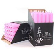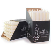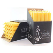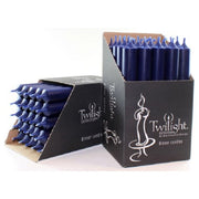 Twilight candles are solid coloured, fragrance free.  Burn approximately 1" per hour, smokeless and dripless. Made in Germany